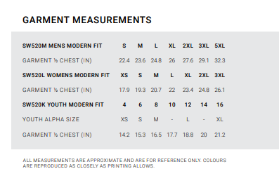 | Size | YXS, YS, YM, YL, YXL, XS, S, M, L, XL, 2XL, 3XL |