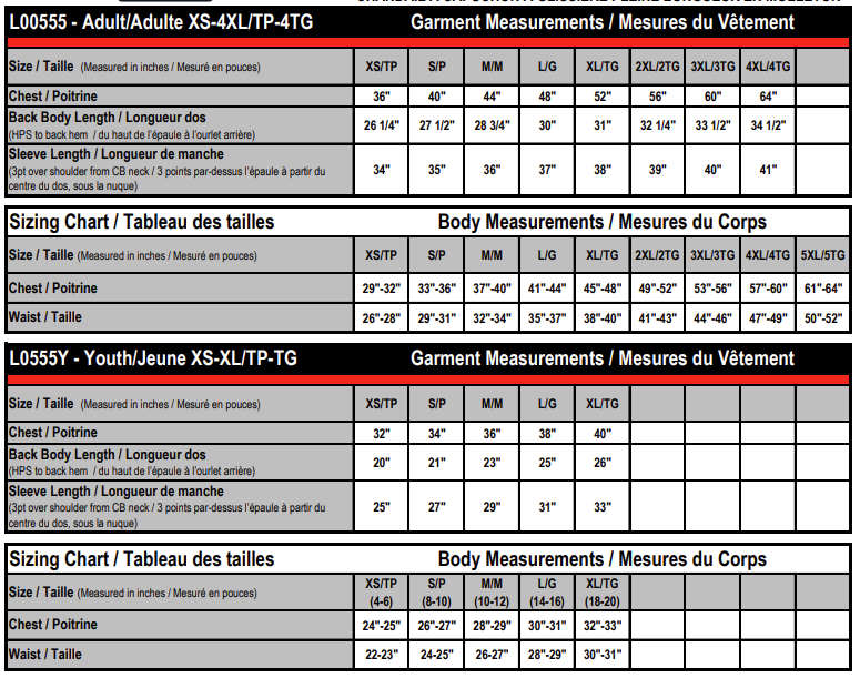 YXS, YS, YM, YL, YXL, XS, S, M, L, XL, 2XL